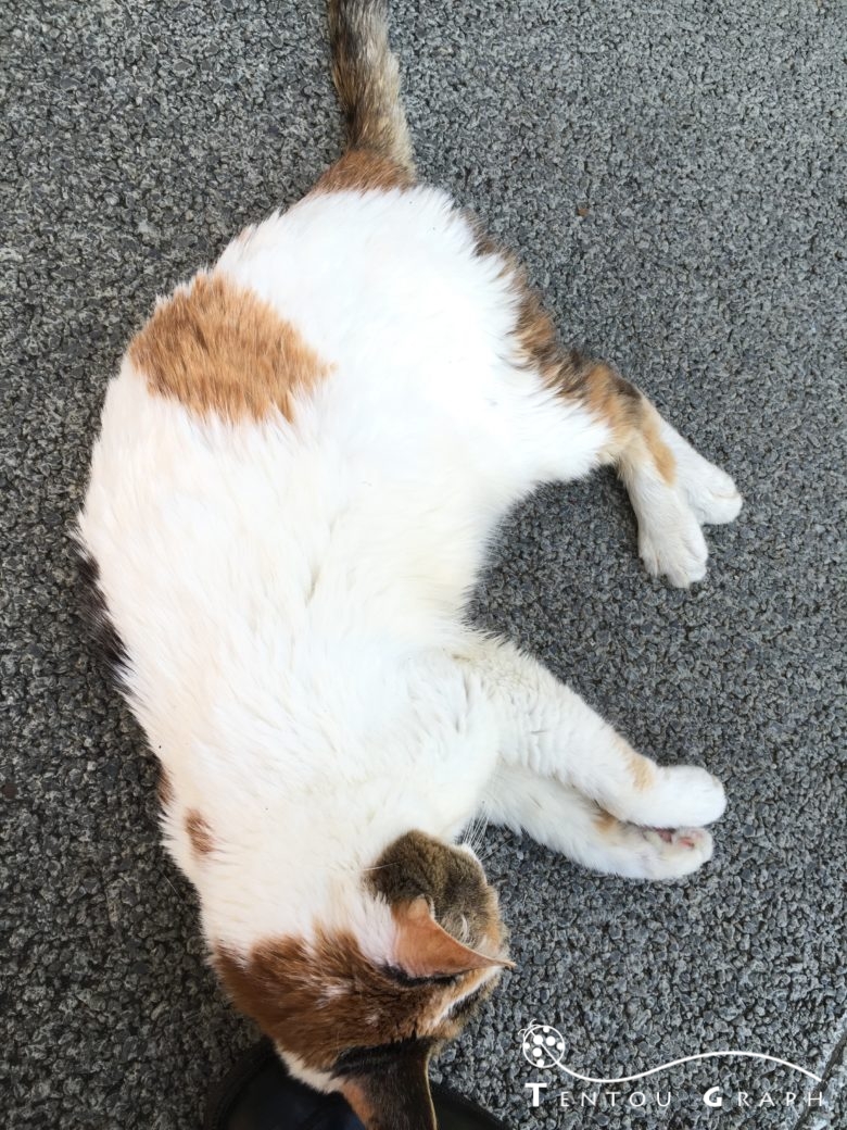 僕の足元に近づくとコテッと横になり、いつもの「撫でろ」が始まりました。