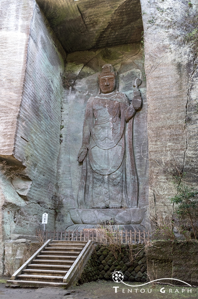 石切場に彫られた「百尺観音」。