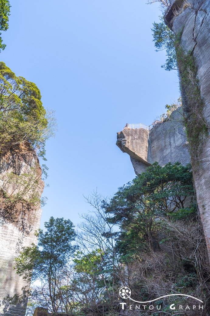 名物の「地獄のぞき」。少し手前の休憩所から、横アングルで撮影できます。