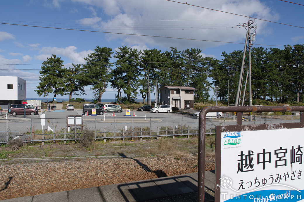 あいの風とやま鉄道・越中宮崎駅を降りると、ホームからすぐに海が見えます。