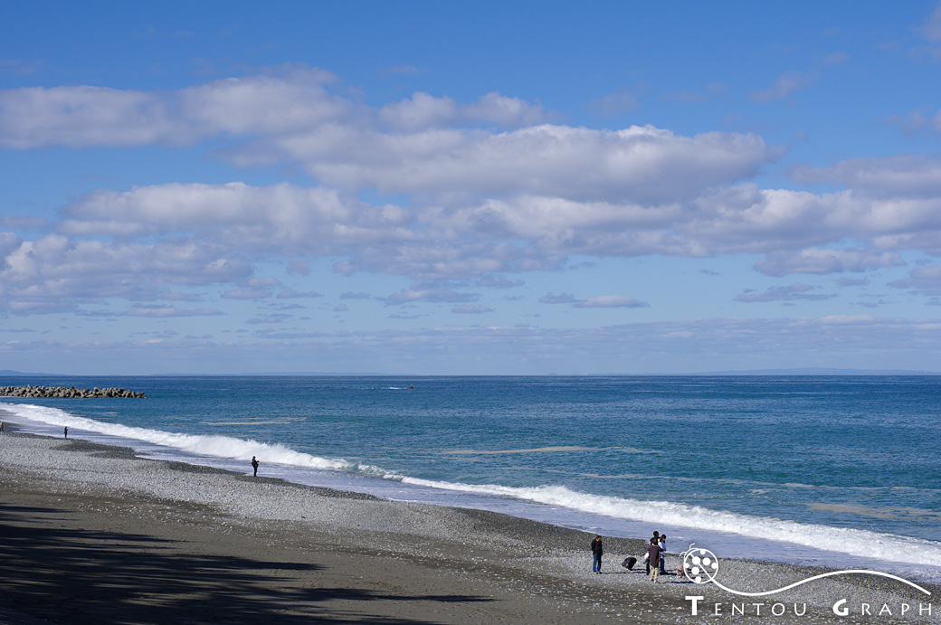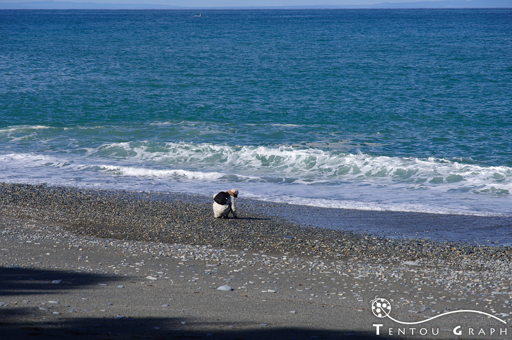 海岸に降りると、石拾いや釣りをする人が。