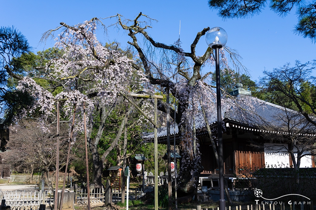 本堂前のしだれ桜は、樹齢300年を超えるとか。