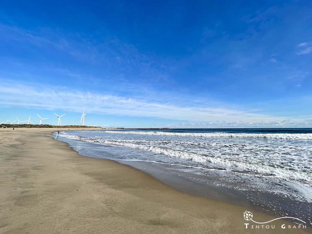 (2020年2月撮影) 「にっかわはま」と読みます。風力発電の風車が目を惹きます。... -
